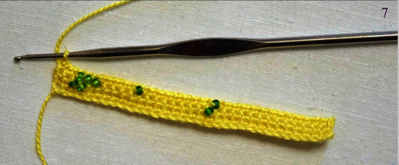Теперь приступаем к выполнению узора. Вывязывать будем СБН, простые или с ввязыванием бусинкой.