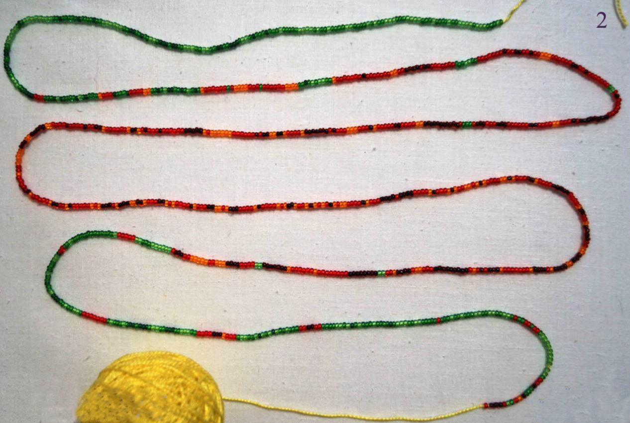 Нанизывать бисер можно прямо на нить – см. фото с подсказками ниже.