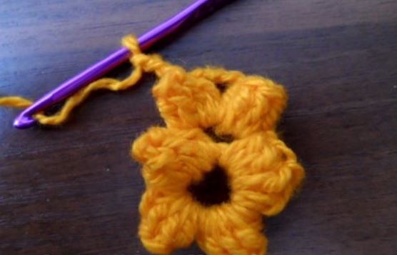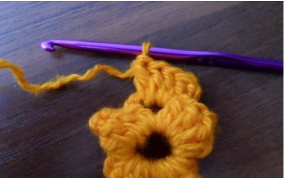 - для листиков набираем 2 воздушн. п. и вяжем крючком с 1-го по 4-ый р. сх.