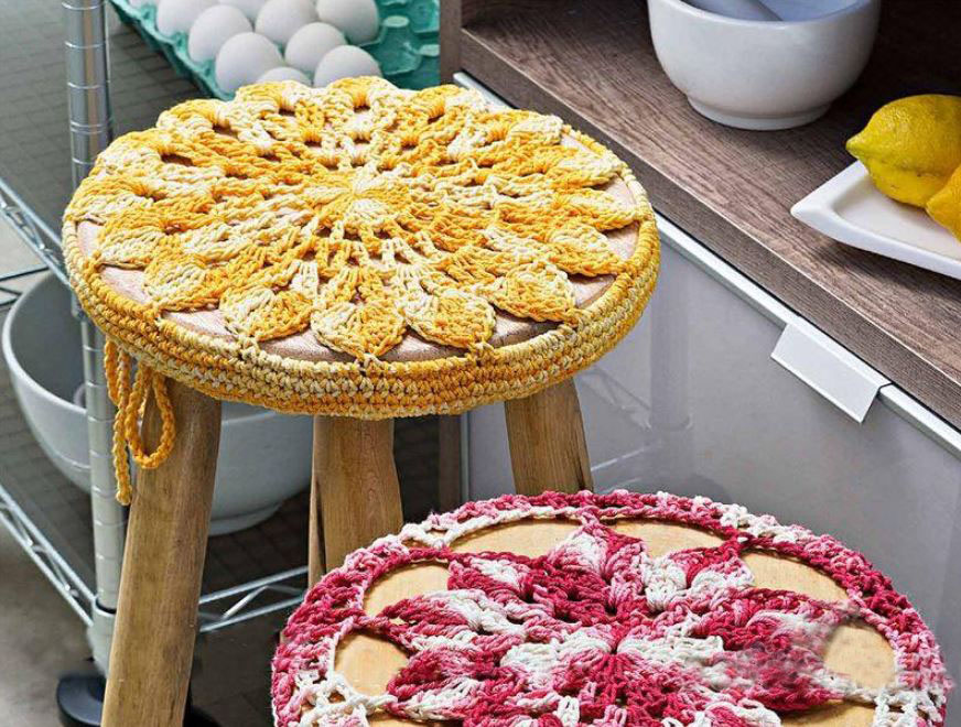 Табуреты – практически неизменный атрибут наших кухонь. Вещь нужная, простая по конструкции и поэтому немного скучноватая. Внести разнообразие, придать изюминку табуретам помогут вязаные чехлы. Подобрав цвет пряжи, стиль, вид вязания вы сможете сделать вашу кухню оригинальной и радужной, создать атмосферу уюта и комфорта. Связать чехол на табурет крючком схемы и описание к ним поможет эта статья.