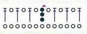 Связав до высоты в 20 см, вяжем с. без н. и чередуем цвет пряжи: белый, красный, опять белый. Далее вяжем 1 р. синей ниткой с. с н., 1 р. дырочек для шнурочка по схеме, 1 р. с. без н. и заканчиваем работу. На этом этапе высота штанишек должна составлять 24 см.