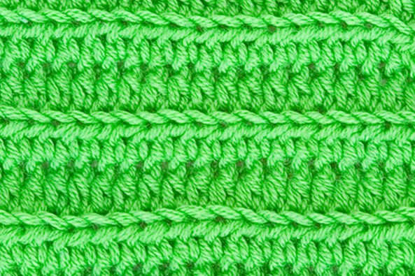 Путем чередования дужек, можно создавать различные рисунки. Вот здесь, например, образец вязания полустолбиками с накидом за заднюю дольку петельки: