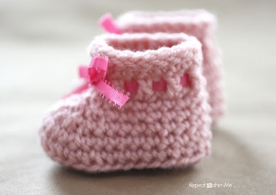 Вот и все! Осталось только протянуть атласную ленточку и первые пинетки, связанные крючком, готовы!