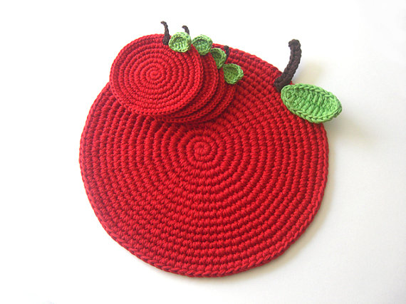 - Вязание по кругу (круговая вязка). В данном случае нет прямых и обратных рядов, ход работы осуществляется по кругу или по спирали, здесь нужно внимательно смотреть схему и читать описание. Чаще всего в такой технике вяжутся ковры или салфеточки, однако иногда из кругляшей создаются юбки и платья (отдельные элементы, так называемые, мотивы, соединяются между собой различными способами). В такой технике, например, связана вот эта симпатичная подставка под горячее: