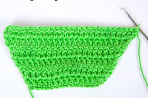 - 2 р.: 2 воздушные петли подъема, полустолбик с накидом до конца ряда (за заднюю дольку).