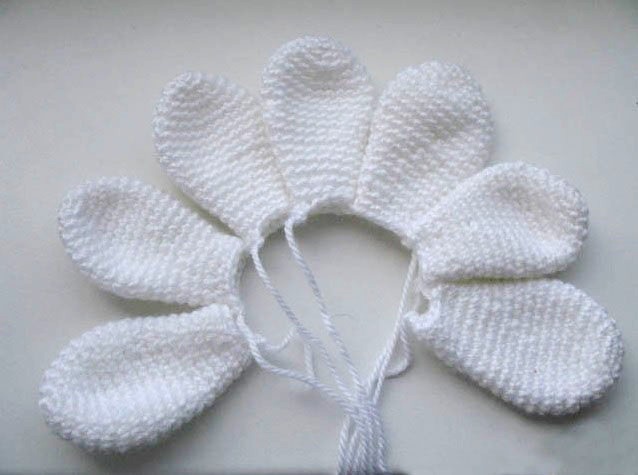 Этот же мастер – класс используем для вязания остальных лепесточков. Всего их нужно связать 15 штук. Получаем такую гирлянду из накладывающихся друг на друга лепестков (ф.5).