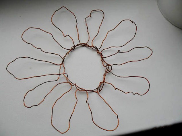 Из проволоки делаем каркас и вставляем его в лепесточки.