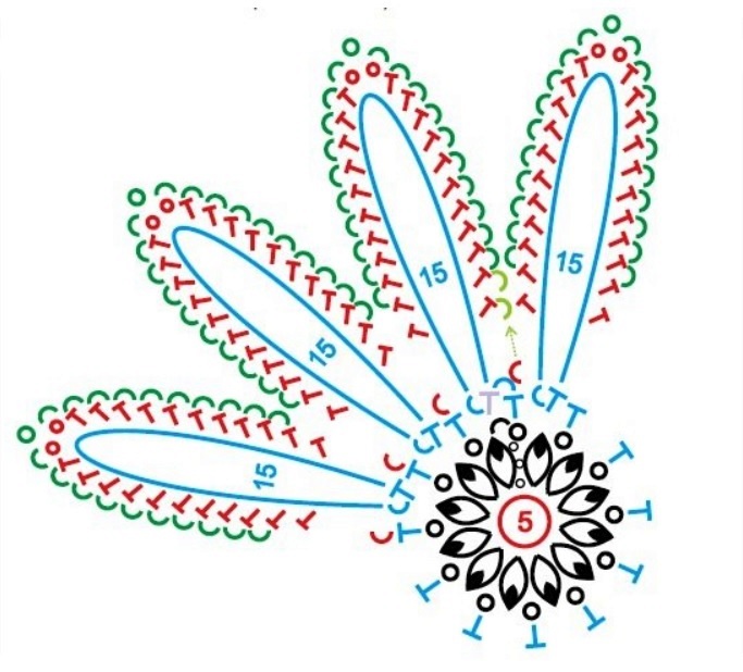 Аналогичная схема используется для вязания всех 12-ти лепесточков.