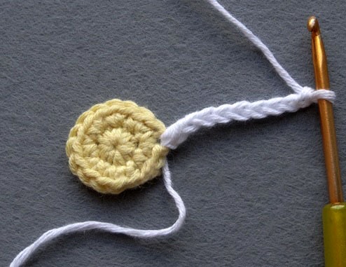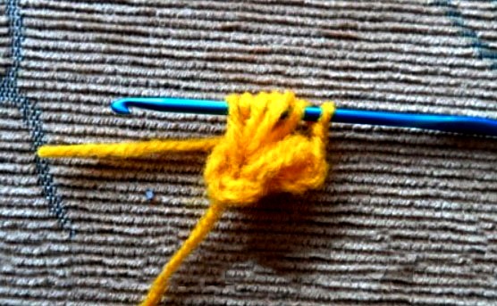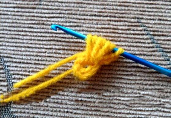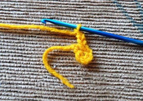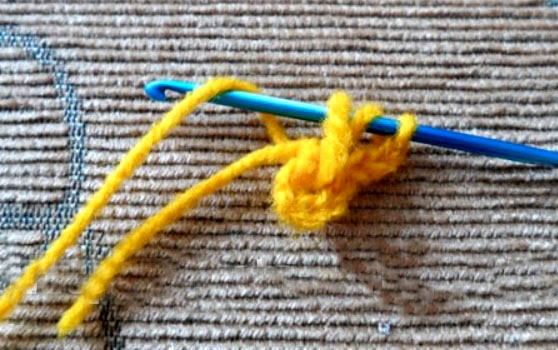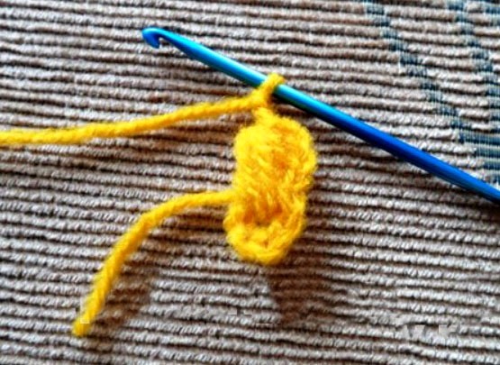 - 1р.: в 1-ую п. от крючка связать 6 столбиков без накида.