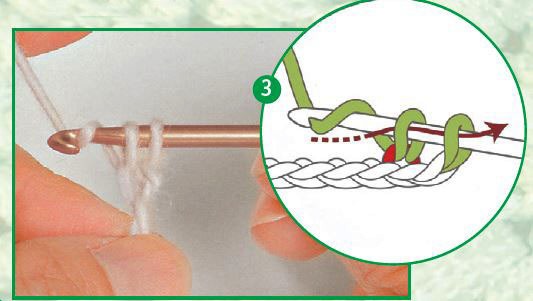 - ввести крючок под первые две дуги пред-щего р. и вытащить п.;