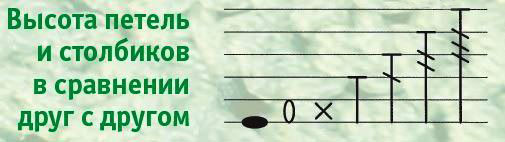 Для начинающих вязальщиц также будет очень полезно знать соотношение по высоте разных элементов. В том нам поможет иллюстрация ниже.
