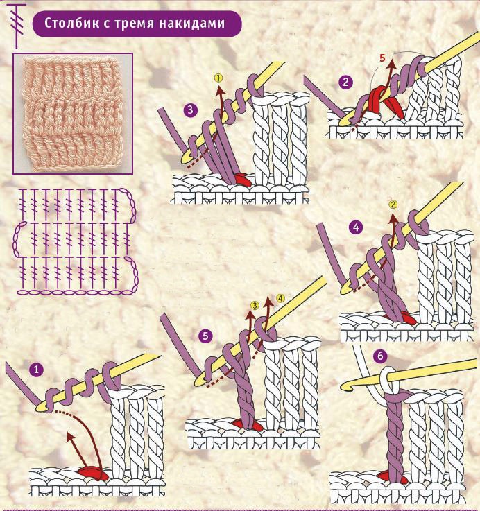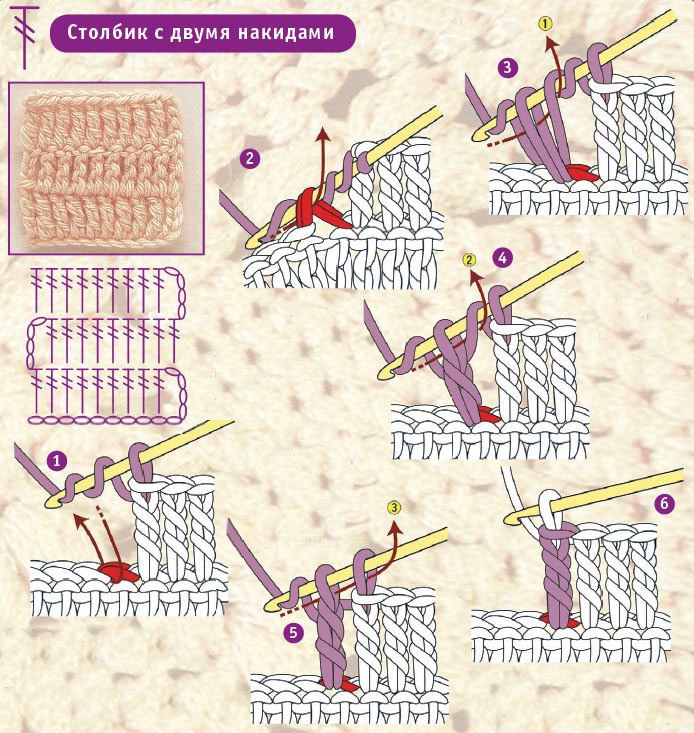 Уроки вязания крючком – столбик с двумя и тремя накидами: видео мастер-класс