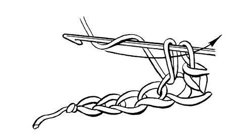 Свяжите расчетное кол-во ВП и еще одну ВП для подъема. Вводим крючок за заднюю дугу 2-ой птл от крючка, захватываем нитку и вытаскиваем петельку.