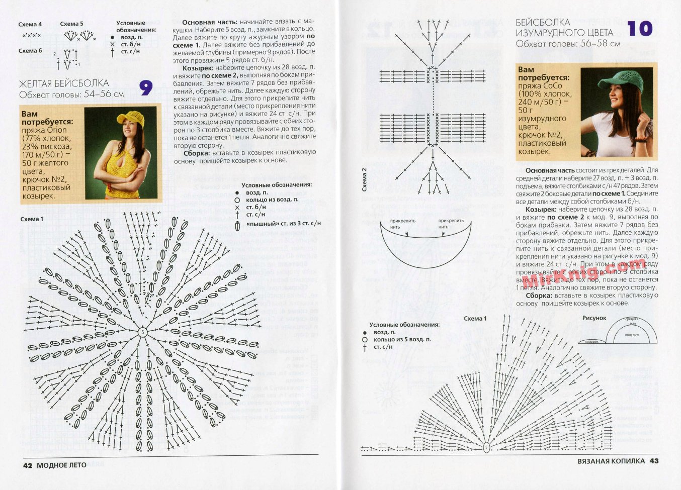 - 5 р.: с. без н. в каждый столбик козырька и кепки по кругу.