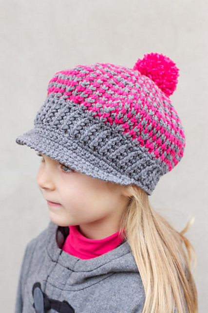 - 4 р.: 1 в. п., 3 с. без н. в 1-й с., 1 с. без н. в каждый с. без н. до последнего с., 3 с. без н., провязываем 1 сс. в сл. с. краешка шапочки, закрепляя козырек = 24-26-26 п.