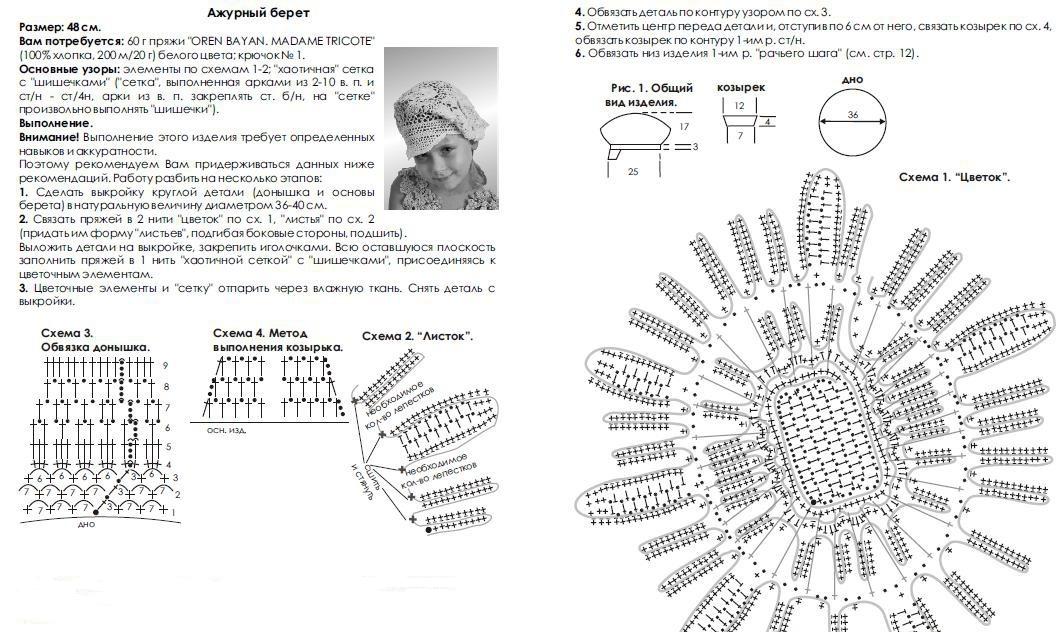 Вязаная крючком кепка – это не только модный аксессуар, но и крайне практичный головной убор, который защитит малышку от перегрева в первые жаркие деньки, и от прохладного ветра – в холодные, поэтому идеально подойдет для весенне-осенней поры. Следуя нашим описаниям со схемами, вы сможете связать любую из предложенных нами моделей всего за несколько дней, даже если совсем недавно принялись осваивать крючок! А пока что предлагаем заварить чашечку чая, устроиться поудобнее и подобрать модель по своему вкусу.