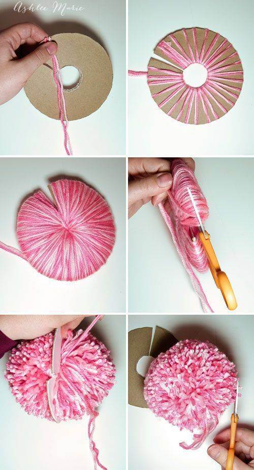 Если не наматывать пряжу слишком плотно, помпоны получатся рассыпчатыми: