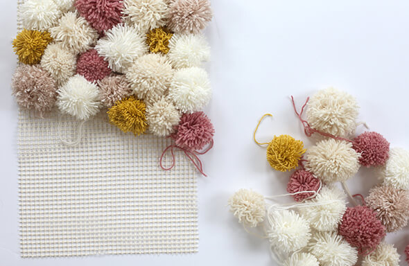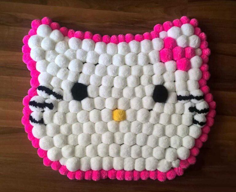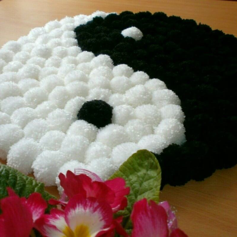Связав все помпоны, наслаждаемся результатом – коврик из помпонов, сделанный своими руками, готов!