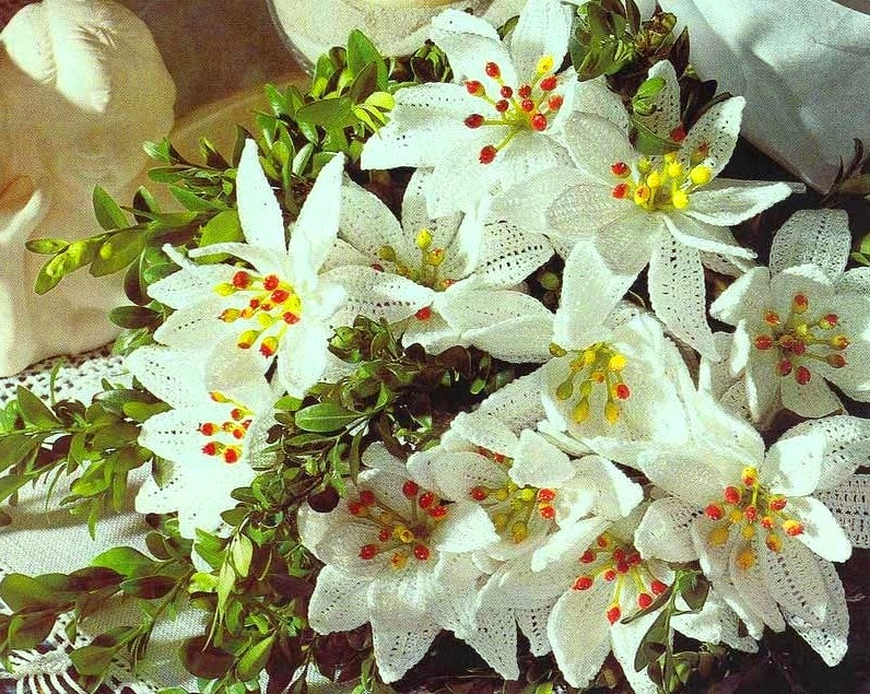 Вязаные цветы могут использоваться для декорирования одежды, головных уборов, использоваться в виде брелоков. Красивые букеты служат настоящим украшением интерьера. В данной статье мы научим вас вязать красивый и простой в выполнении цветок. Лилия крючком схема и описание с подробными фото наверняка вдохновит вас взяться за крючок и связать такие замечательные цветы.