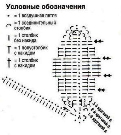 Пояснения к схеме и указания по вязанию: