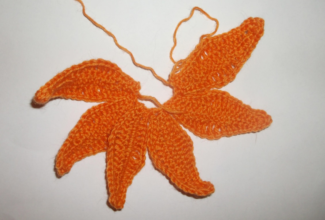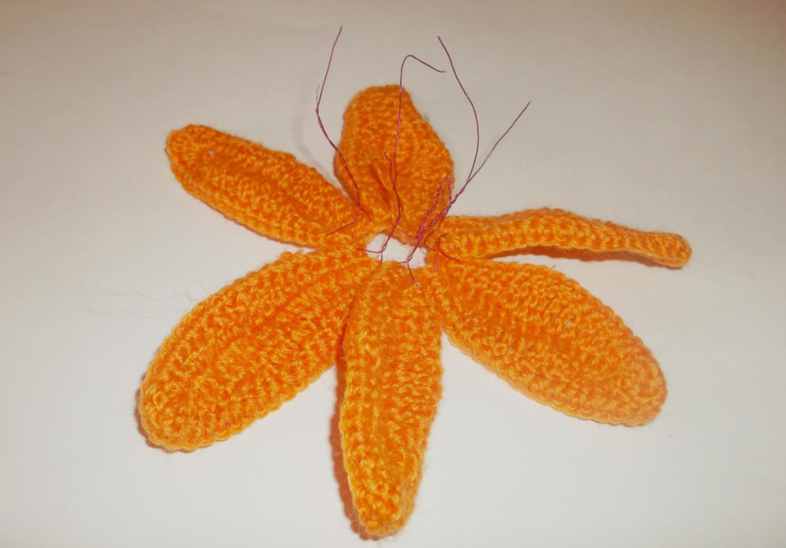 Аналогично будем вязать все остальные лепесточки.