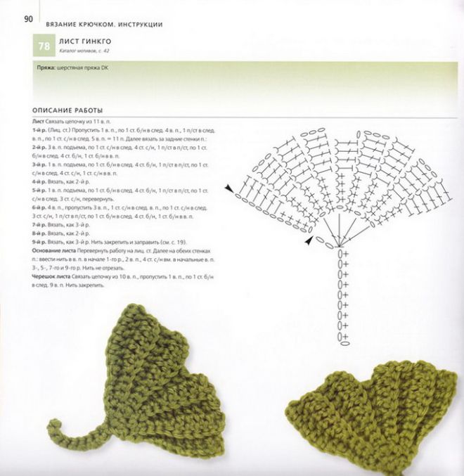 - вязание следующих 8р. листочка – см. схема. Продолжаем: