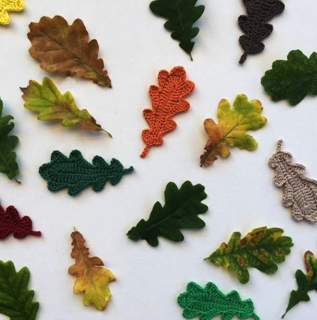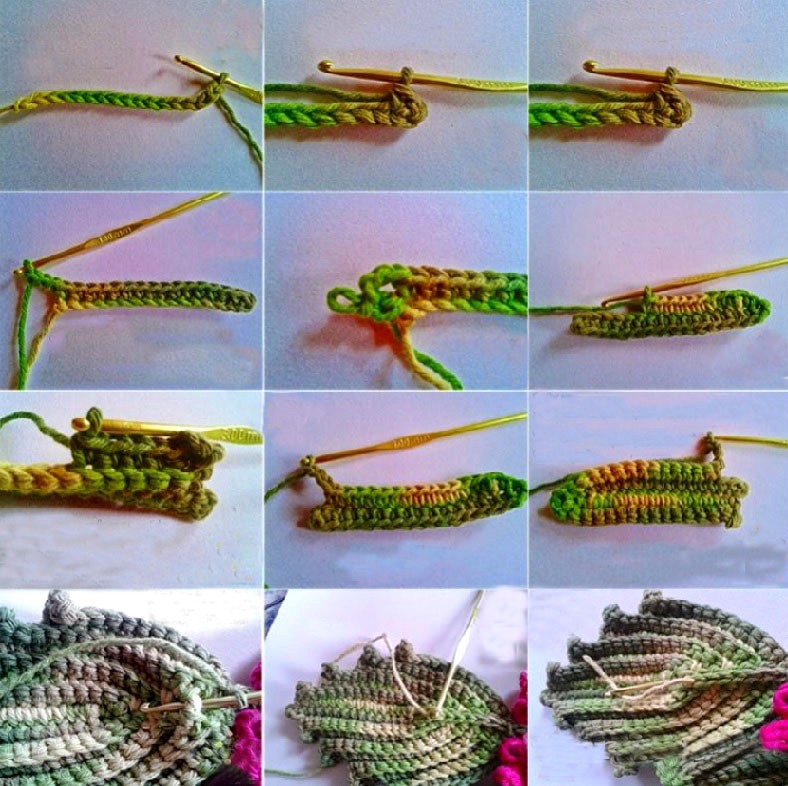 Вязаными листочками можно украсить многие изделия: одежду, шляпку, сумочку. Их можно использовать для украшения интерьера – в виде вязаных растений в горшках или в настенных панно. Связать листочки крючком или спицами можно в разных вариантах, в этой статье рассмотрены несколько типовых мотивов.
