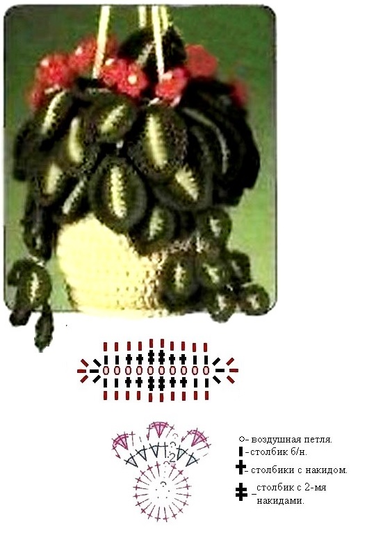 Делаем цепочку из 20 ВП. Далее схема вязки узора такая: