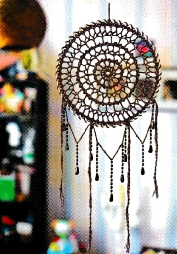 Предлагаем вам связать индейский талисман, защищающий спящего человека от злых духов. Плохие сны должны запутаться в паутине, а хорошие обязательно проскользнуть сквозь отверстие посередине круга. Как правило, амулеты вешают над изголовьем кровати.