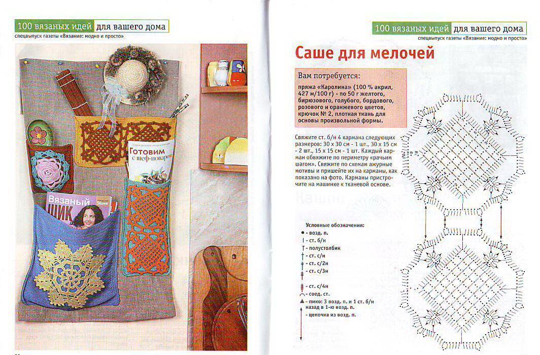 Потратив немного времени, использовав остатки ниток, а главное – проявив фантазию, вы сможете связать несколько очень интересных и нужных вещей. Различные мелочи для дома, а именно они и будут темой этой статьи, украшают и организуют быт. А еще это прекрасная практика для начинающих вязальщиц. Связать крючком мелочи для дома может даже школьница. Вещи эти, как правило, небольшие по размерам, выполняются по простым схемам. Предлагаем вам несколько интересных идей для воплощения.