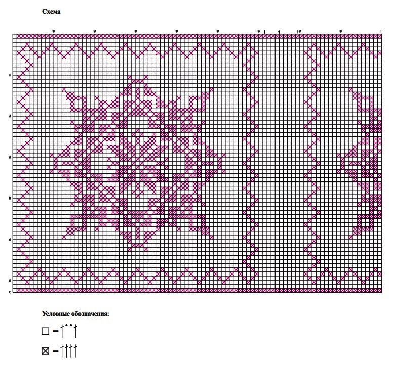 Далее вяжем прямыми/обратными рядами в филейной технике по схеме по 131р. Обрезаем нить, закрепляем.