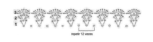- 2р.: делаем 1 ССт для перехода в 1-ую арку (возд. п. между столб. с/н), набираем 3 воздушн. п. подъема и провязываем 1 столб. с/н плюс 3 возд. п. плюс 2 столб. с/н, в следующ. арку провязать *2 столбика с накидом + 3 в. п. + 2 столбика с накидом* – между *-* сделать в каждой арке до конца р., поворот;