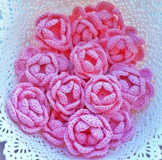 Розу часто называют королевой цветов. И в вязании для декорирования она используется очень часто. Смотрятся такие цветы очень красиво, вывязываются просто. В этой статье рассмотрена вязаная роза крючком схема и описание от самого простого варианта спиральной розы до шикарного цветка с несколькими слоями лепестков.