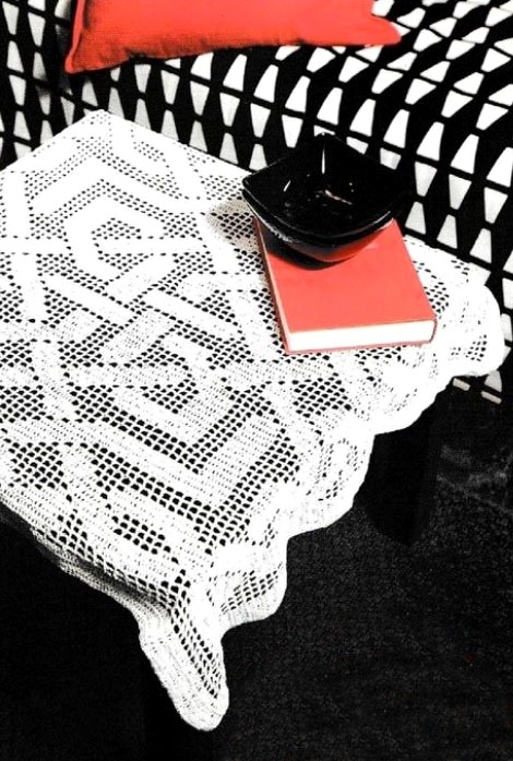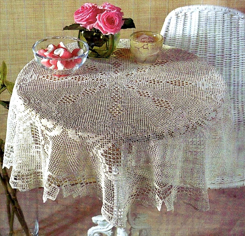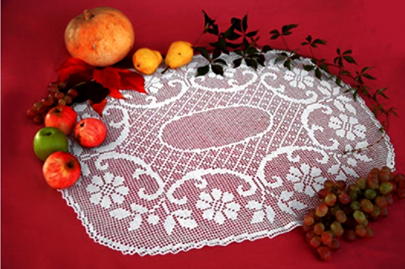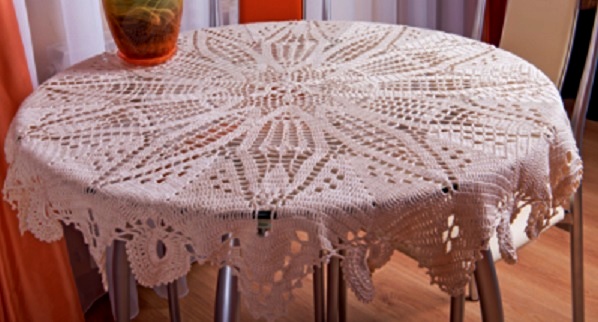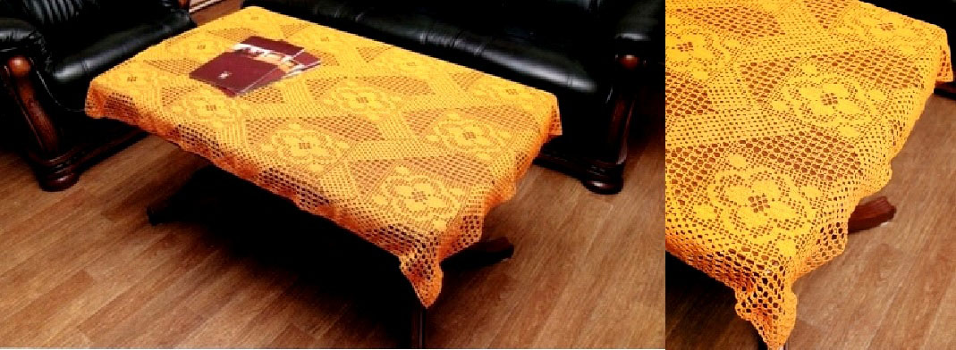 Изменив толщину пряжи и диаметр крючка, вы можете по своему желанию изменить размеры скатерки.