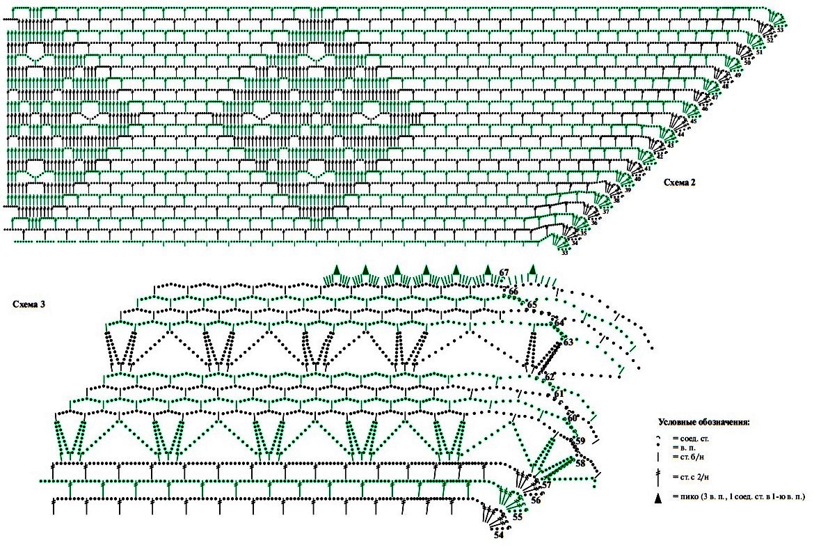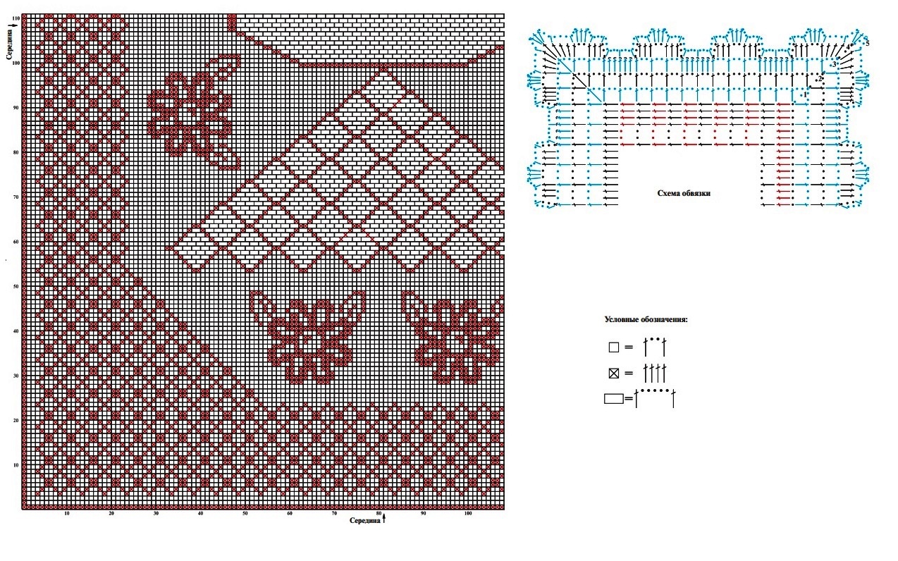 Дальнейшее филейное вязание прямых/обратных рядов делаем по изображению схемы по 148 рядок. Нитку не обрезаем.