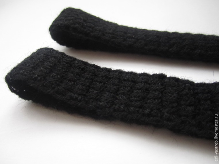 Переходим к накладке. Набираем на крючок 27 ВП, после чего вяжем 9 р. Продолжаем работу только по краям, используя 5 пет. После 30-го ряда закончить деталь