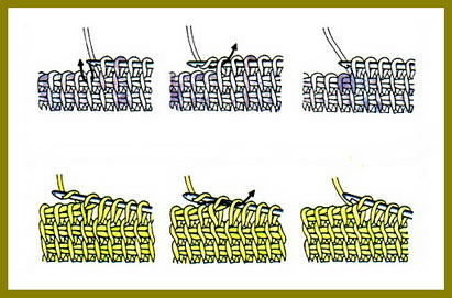 - 2р. – 3 ВП, 1 ССН в первую петлю ряда, 2 ССН в каждую послед. пет. ряда (36 ССН).