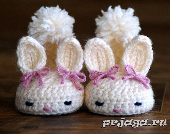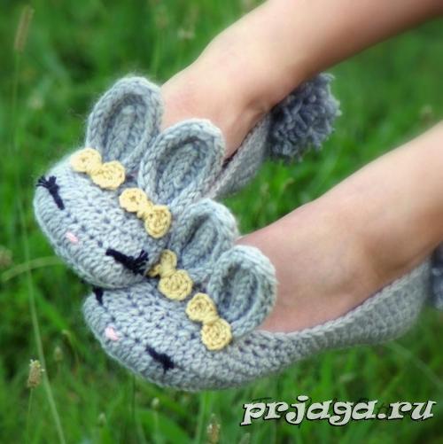 Нежные и пушистые тапочки зайчики станут любимой домашней обувью для ваших детей. Схемы выполнения подойдут для начинающих мастериц.