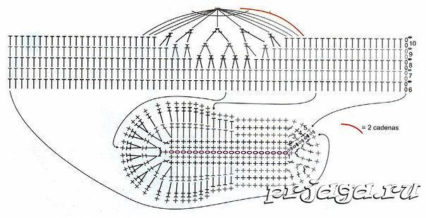 Для мыска набираем цепочку из 5 ВП. 1р. – 5 СБН, 2-7 р. – выполняем равномерную прибавку по 5 СБН в каждом ряду