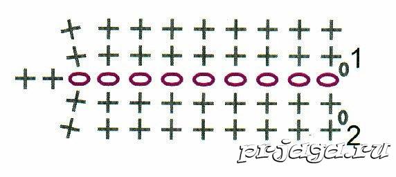 Набираем 20 ВП в цепочку и вяжем, как показывают схемы