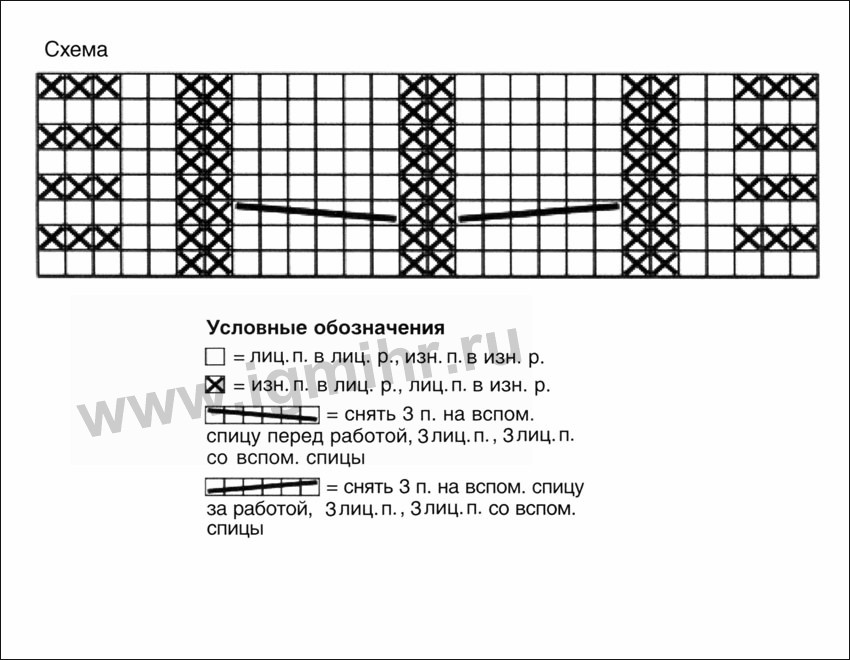 - 3р. – 3 ВП, 1 ССН в первую пет., а далее повторяем 5 раз такую комбинацию: пропускаем 2 пет., 5 ССН в след. пет., пропускаем 2 пет., 2 ССН в след.пет. Затем снова пропускаем 2 пет., делаем 5 ССН в след.пет и завершаем ряд соед. ст-ком.