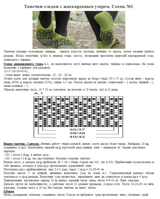 Сначала, меряем стопу и делаем выкройки. Для этого ставим стопу на бумагу, обводим её, а затем меряем длину по выступающим точкам. Подошву выполняем по выкройке. Сами носочки вяжем по кругу в направлении «сверху –вниз». Набираем 60 ВП и выполняем 1-ый ряд С-ками Б/Нак. Последующие 8 рядов (может быть другое кол-во, в зависимости от длины стопы) делаем таким образом: отмечаем центральные 6 пет. и в них вяжем по 2 ССН, ост. пет. провязываем СБН. След. ряд выполняем аналогично.