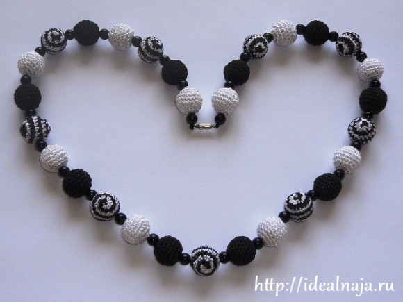 Монохромные вязаные бусы крючком