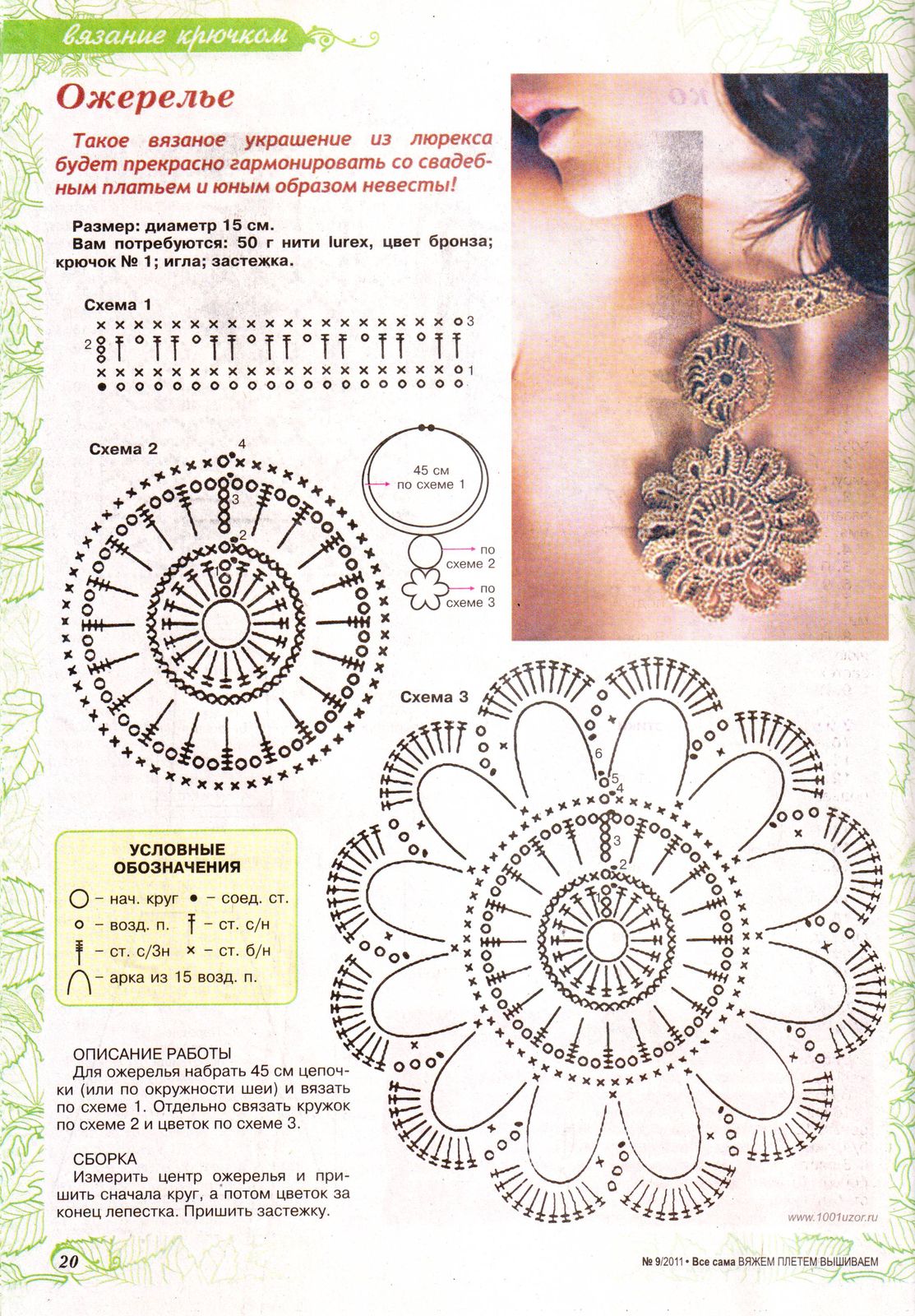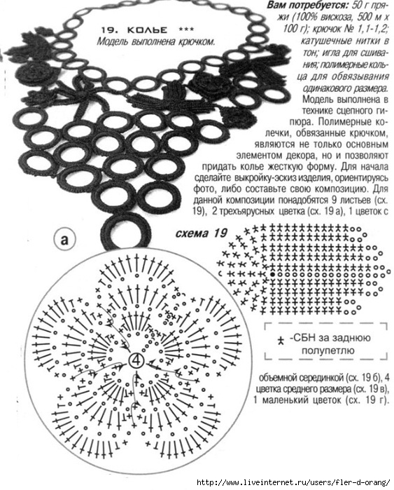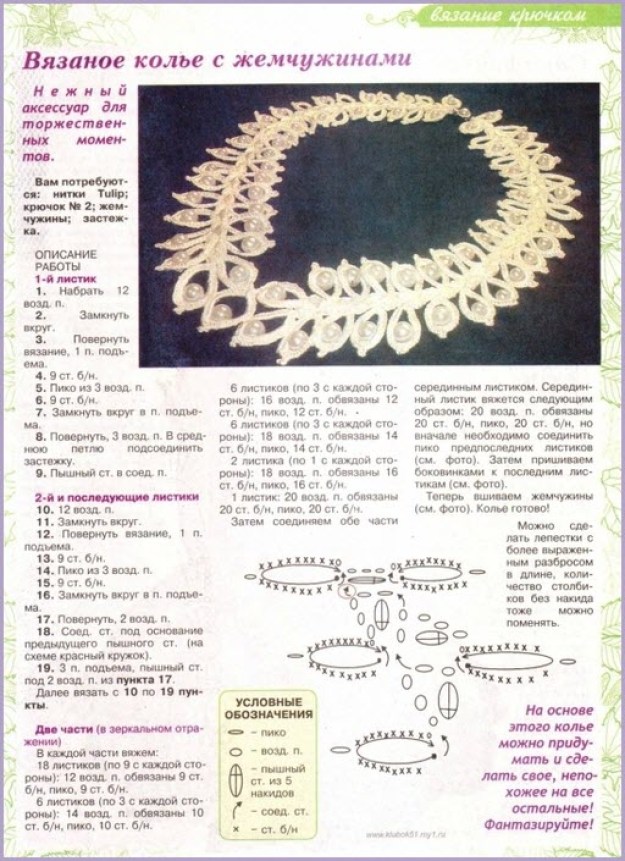 Вязаные украшения крючком – колье и браслет. Схемы и описание