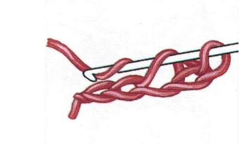 Заводим кр. во 2-ую птл слева, подхватываем нить и вытаскиваем птл.
