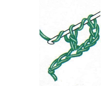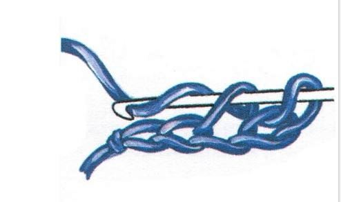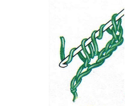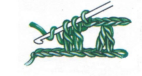 Пропускаем нить через 2п. на кр-ке, еще раз снизу захватываем нить.