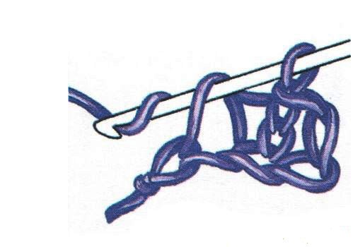 Захватываем нить снизу, протаскиваем ее через 2п., снова подхватываем нитку снизу.