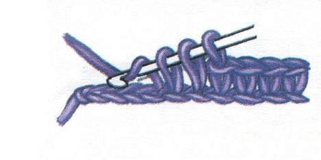 Сделаем накид, вводим кр. в 3-тью птл от крючка, подхватываем снизу нитку.