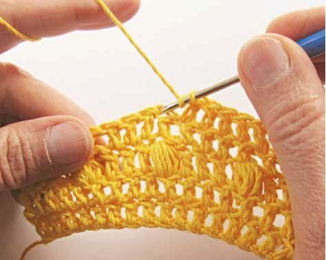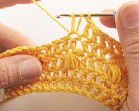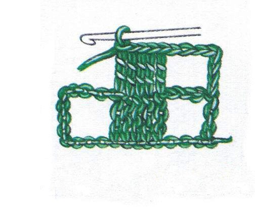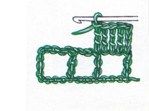 Для заполнения клеточки провязываем 1 ССН над стлб пред-щего р. и 2 ССН в цеп-ку из в/п пред-щего р.