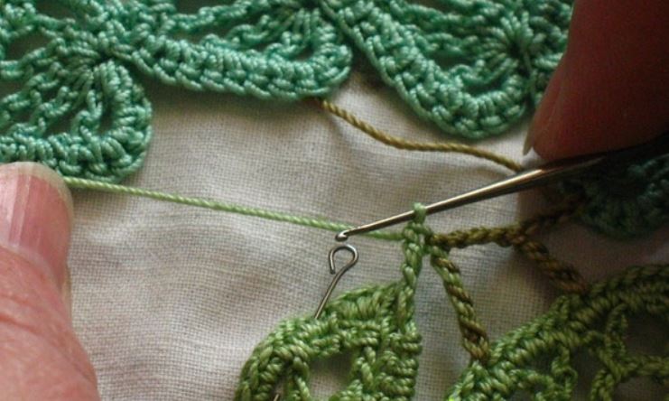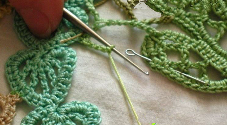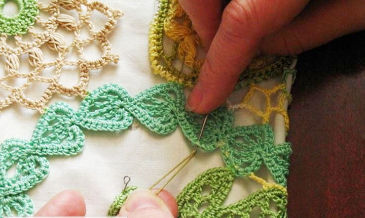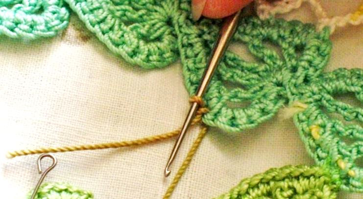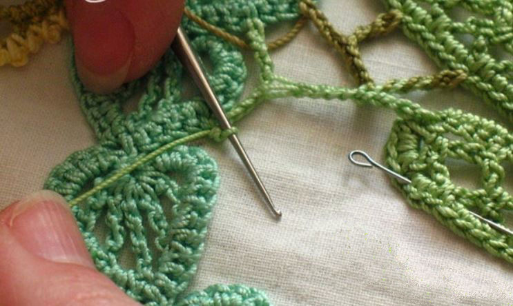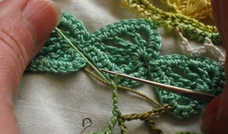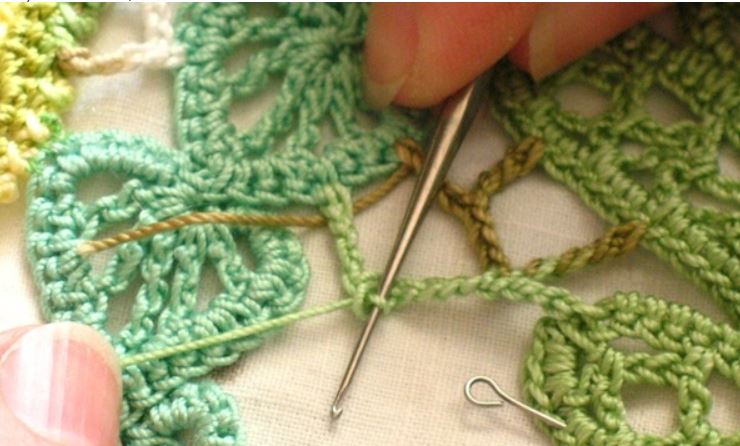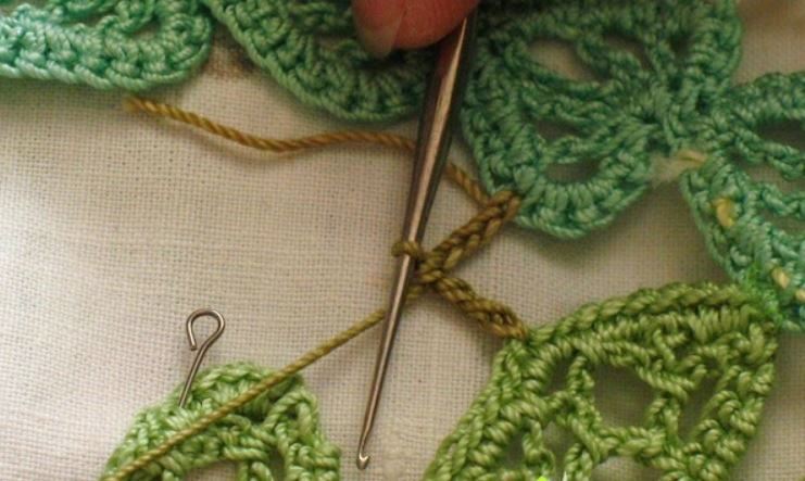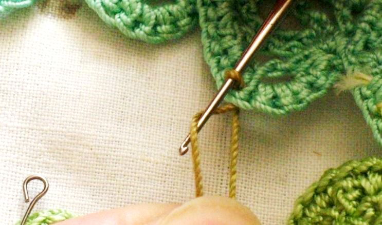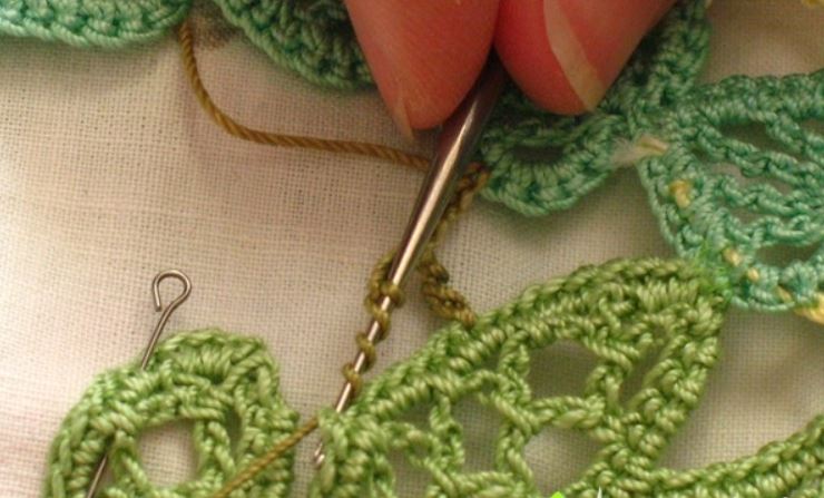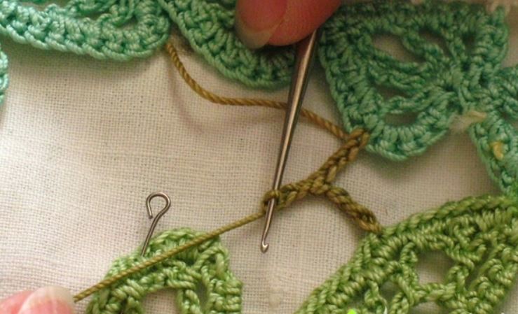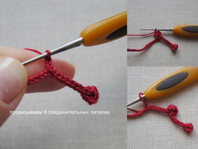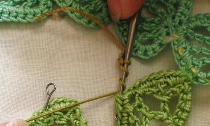 На третьем этапе элементы соединяются между собой крючком или иглой с ниткой.